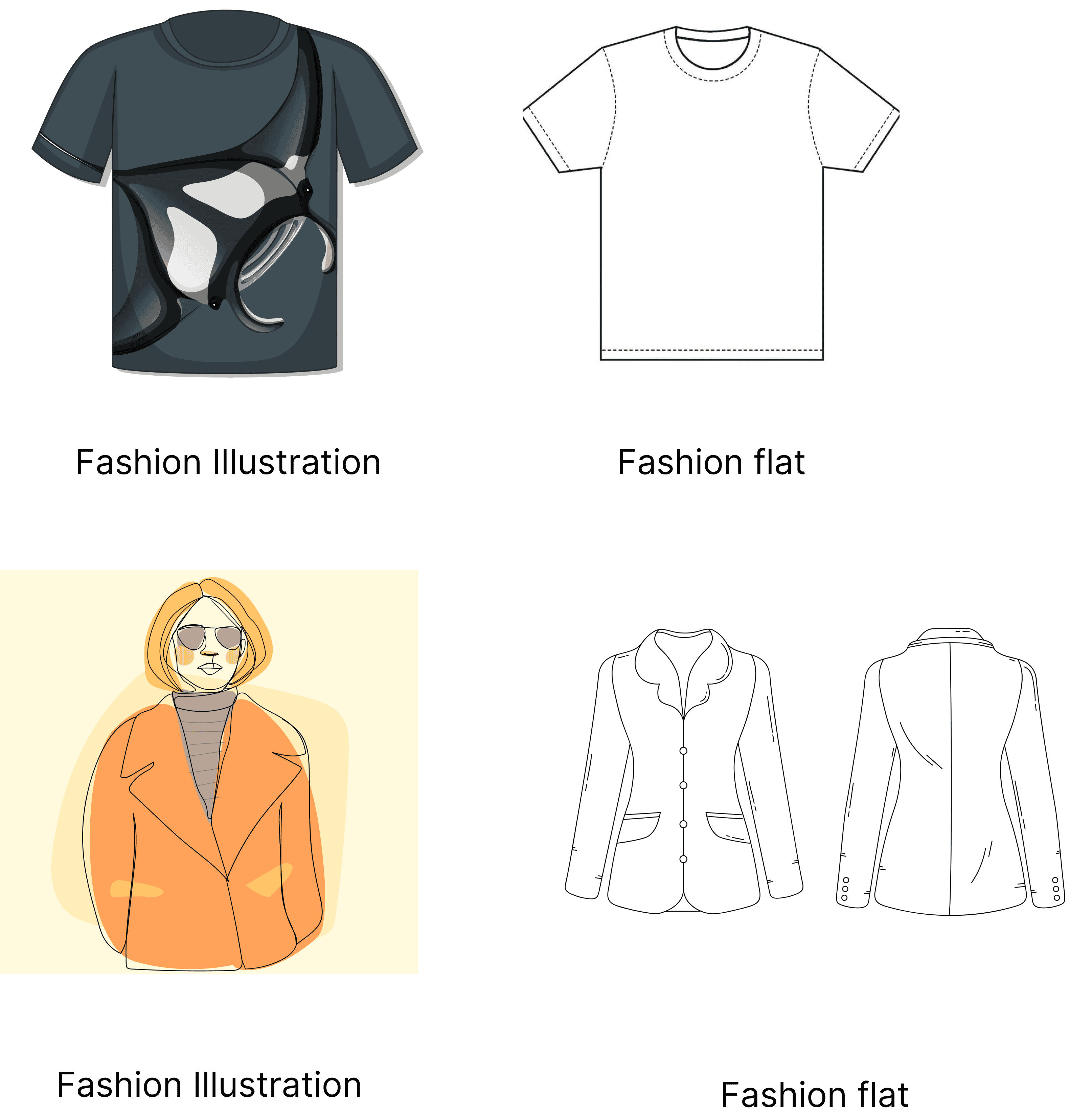 One common characteristic of technical fashion flats is that they are, well, technical in nature. This is unlike fashion illustrations that are stylized and artistic, filled with vibrant colors.