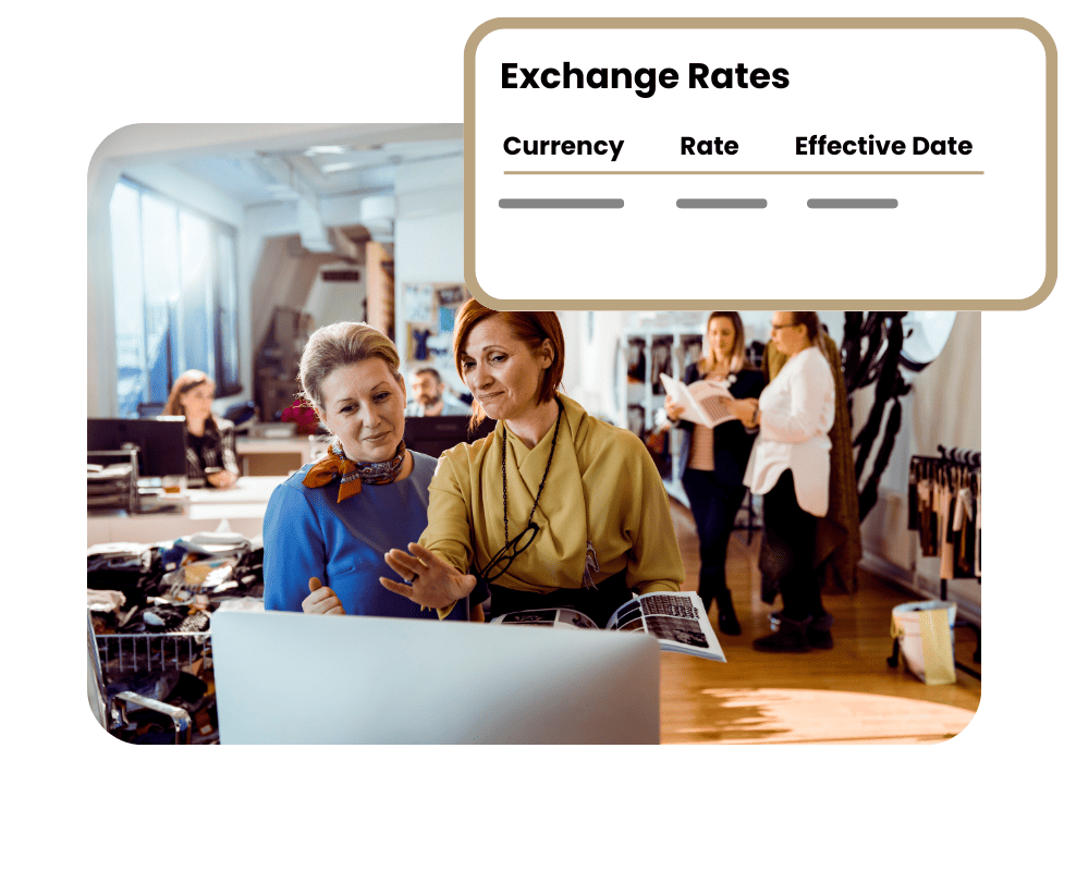 Convert currencies automatically using up-to-date forex rates or do so manually using rates that best fit your business needs.